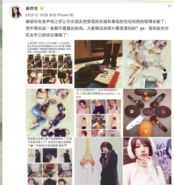 结果昨天秦舒培就在微博回应表示他们去年就离婚了,还表示新任小女友麻烦你不要用老娘的东西: