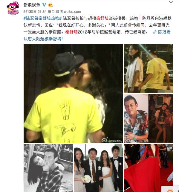 再说国内,5月30日晚上突然爆出陈冠希和秦舒培在一起了!