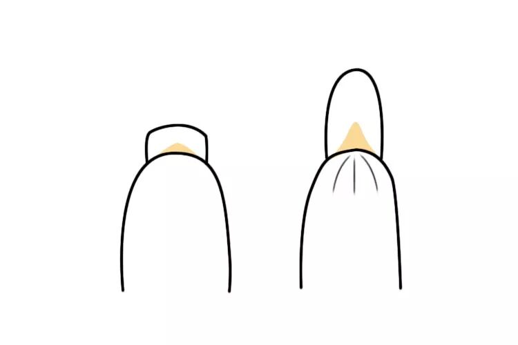 如果高于指腹,一般是甲床本身就很长了,甚至剪指甲都容易剪到肉吧?这样的指甲没有空间育成了,并且平时用手也可以适当给指腹一些压力,让游离线稍微退一退,不然会把指甲拉成鹰钩。