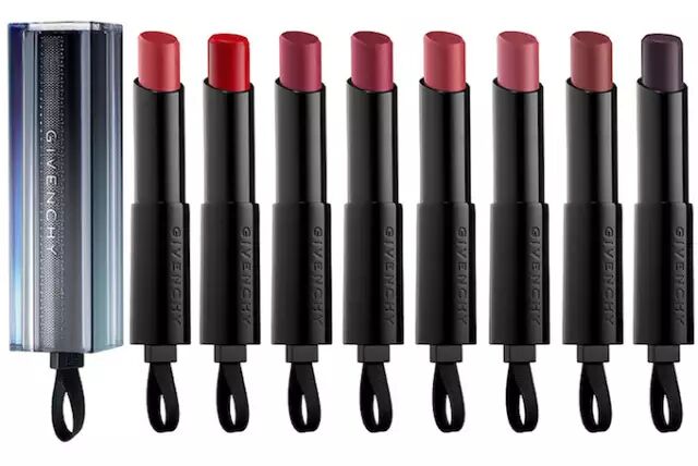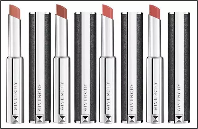 这是俗称的纪梵希小牛皮,盖子用黑色牛皮包裹,镶有纪梵希标志性的铆钉。这个系列显色度相对禁忌之吻系列要低,是半透明的。