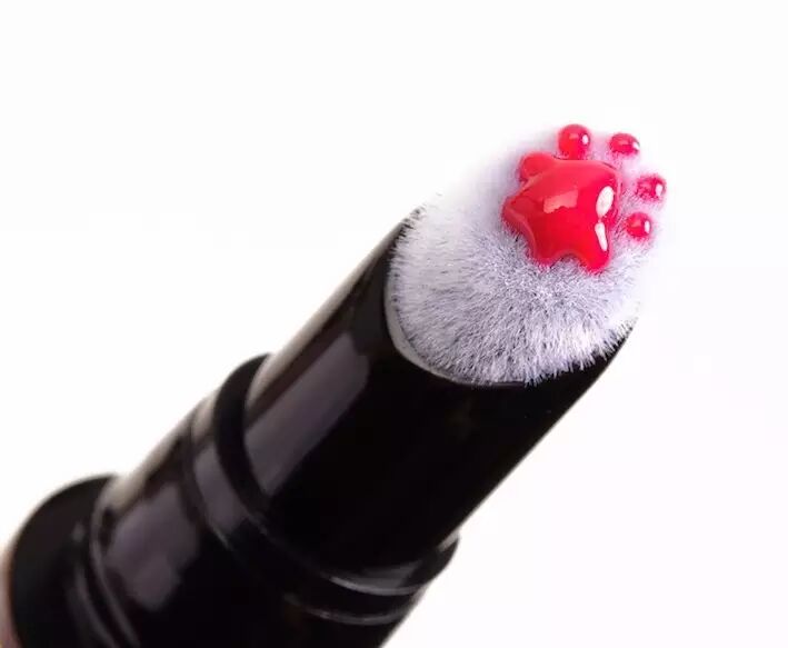 通过按压笔尾的方式将唇釉挤出,再用笔头的海绵上妆,能够得到较均匀的效果。需要注意的是第一用要多按几下,不要按太快以免刹不住车挤出一大滩。