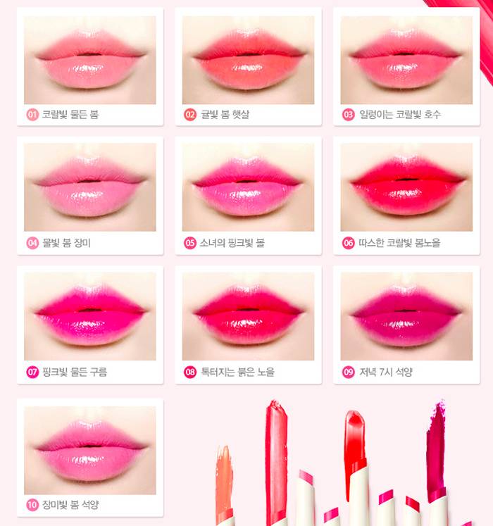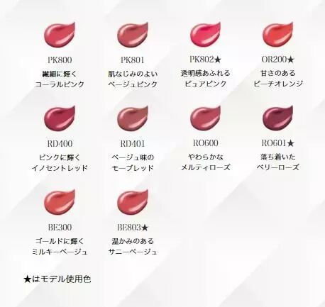 发色比较清透,从嫩粉色、珊瑚色、水红色到梅子色都有,质地丝滑水润,还添加了薄荷,所以上嘴会很清爽提神。带有SPF16/PA+,可以对嘴唇起到防护作用。其中亮黄色的那支可以根据嘴唇的水分含量变化颜色,嘴唇越水润似乎红感会越多。不过坏消息是,夏季系列四月就在日本发售了,所有产品都是限量,所以很多已经断货啦……
