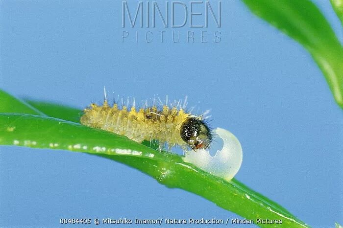 正在吃卵壳的幼虫。图片:Mitsuhiko Imamori / Nature Production