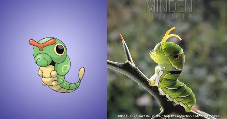 绿毛虫和五龄幼虫。图片:精灵宝可梦;Takashi Shinkai / Nature Production