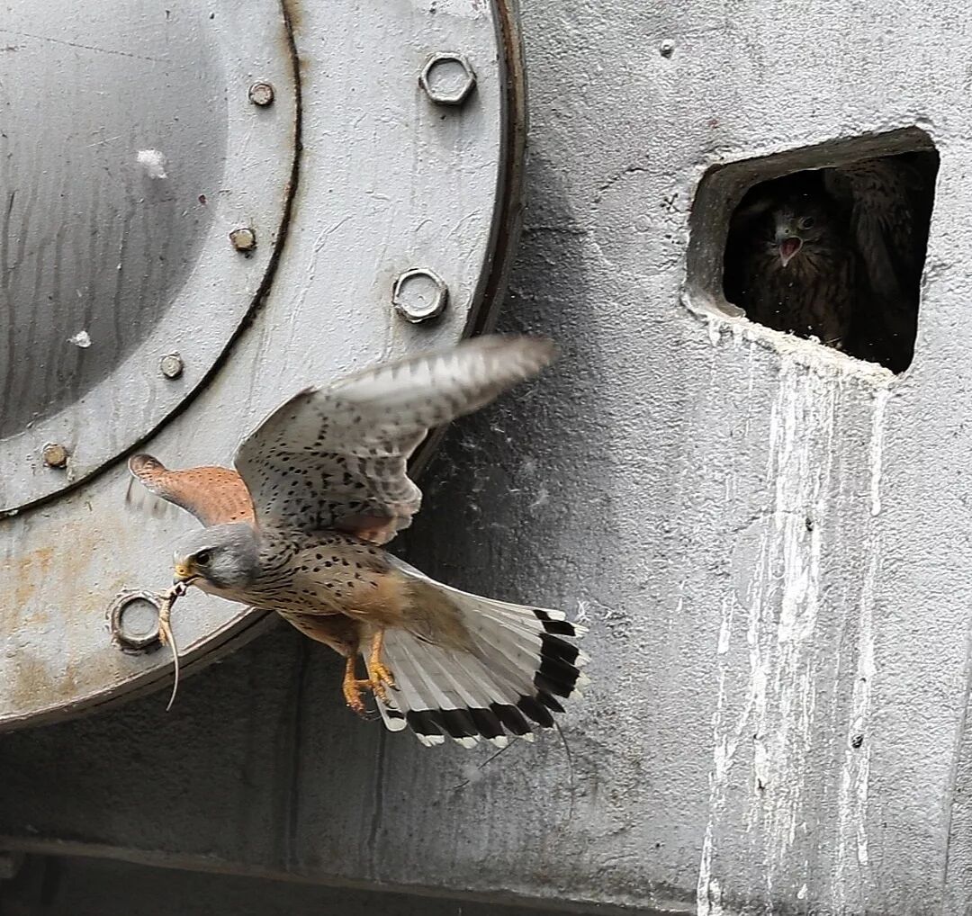 红隼在水坝的钢结构里筑巢。图片:章海涛