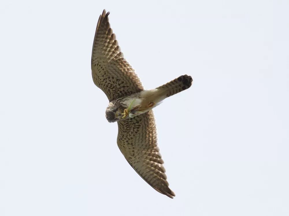 捕食的红隼,抓到了一只螳螂。图片:韩京