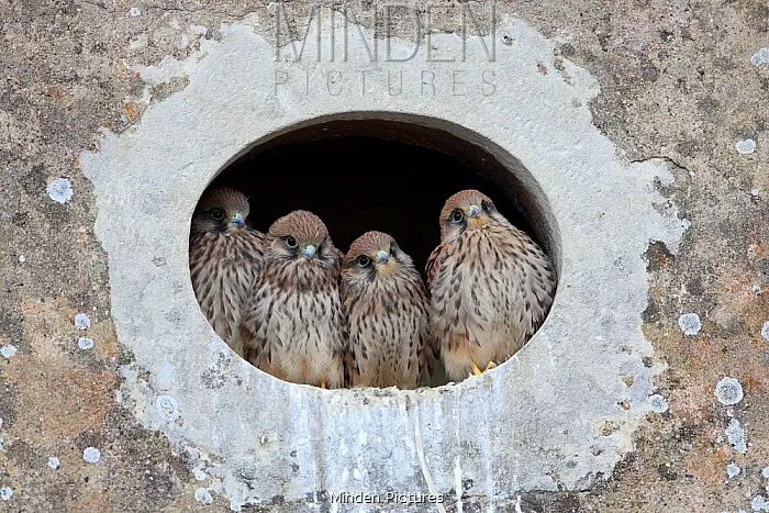 红隼幼鸟在人工巢箱中生活。图片:Flip De Nooyer / Minden Pictures