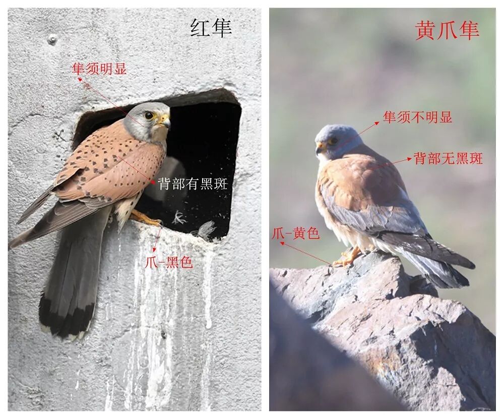雄性红隼和黄爪隼对比。图片:章海涛、关翔宇