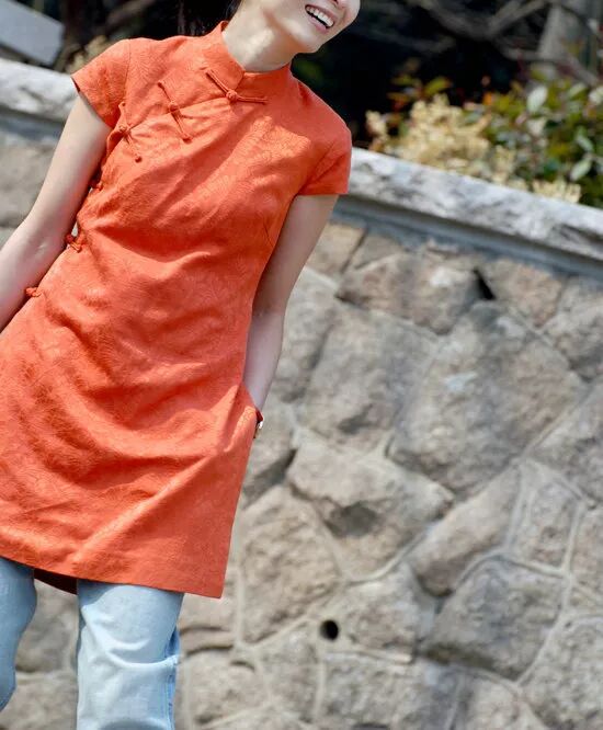 这类款式市面上现成可以购买到的比较少,但是可以选择一些做成裙式旗袍的假两件,保留旗袍韵味又有几分俏皮。与直接设计成裙装的立领连衣裙不同的是,这种设计依然保留两侧开衩的元素,看起来更符合大家对于旗袍的印象,也更沉稳一些。