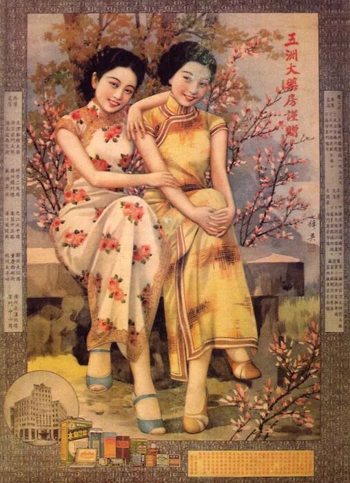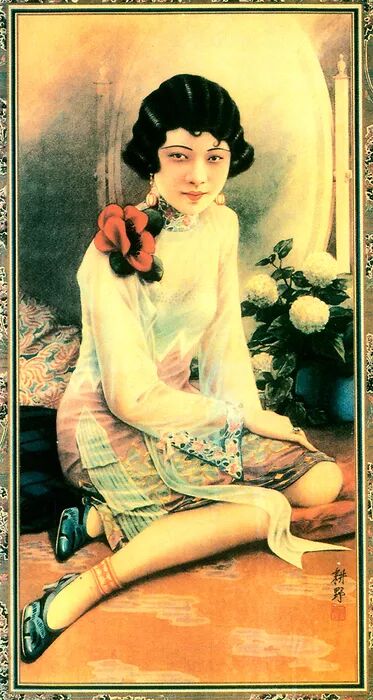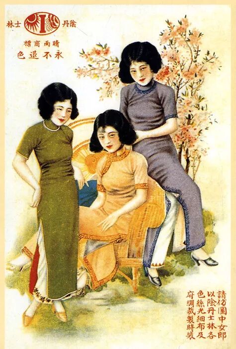 早期的平裁旗袍,旗袍下摆是平直的,甚至是A字型扩散的,加上当时女性的发育在如今看来十分单薄瘦削,穿着旗袍的形象比较楚楚动人。
