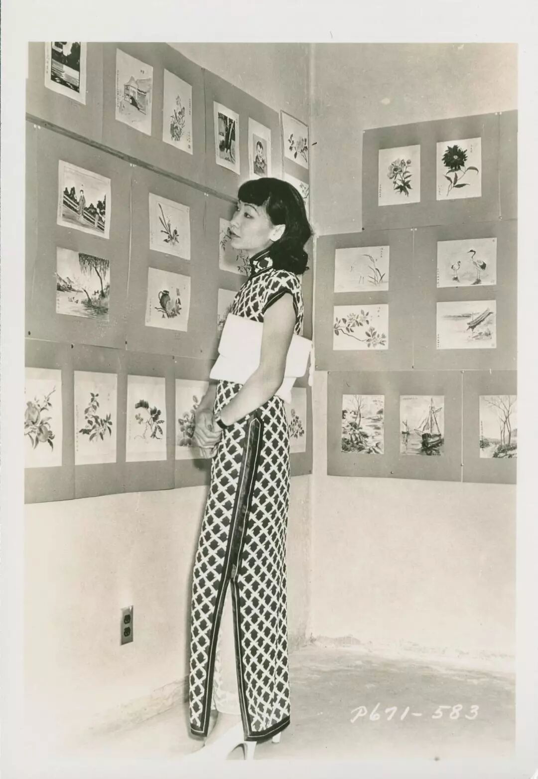 除了上面这两种,高开衩还能做成洋装款式。也就是在旗袍开衩处做另外的拼接,然后打褶做成类似裙装的样式。这是被很多人忽略的旗袍款式百花齐放的年代的设计巧思。
