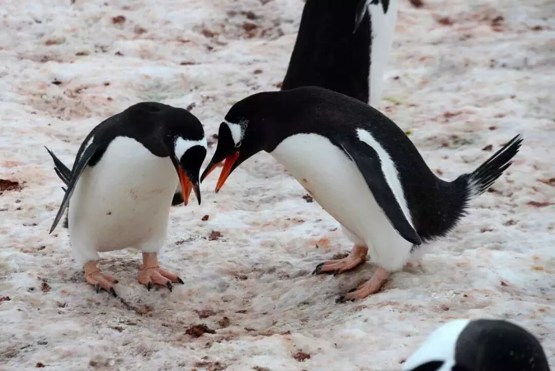 首先,它们开始相互鞠躬,这是巴布亚企鹅的求偶动作。