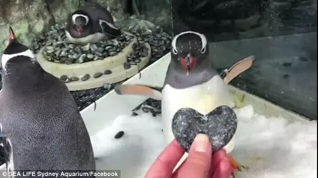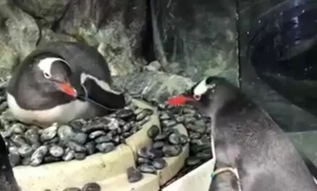 它们给对方送去精心挑选的鹅卵石,这是准备要共筑爱巢的意思。谁要是没那个意思,就会用嘴把石头推开、表示拒绝。但是,小斯和小马都喜欢对方带来的鹅卵石。