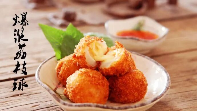 将马苏里拉芝士塞到去核荔枝中,裹上面包糠后油炸做成的爆浆荔枝球。图片:鬼蜀美食 / 豆果美食