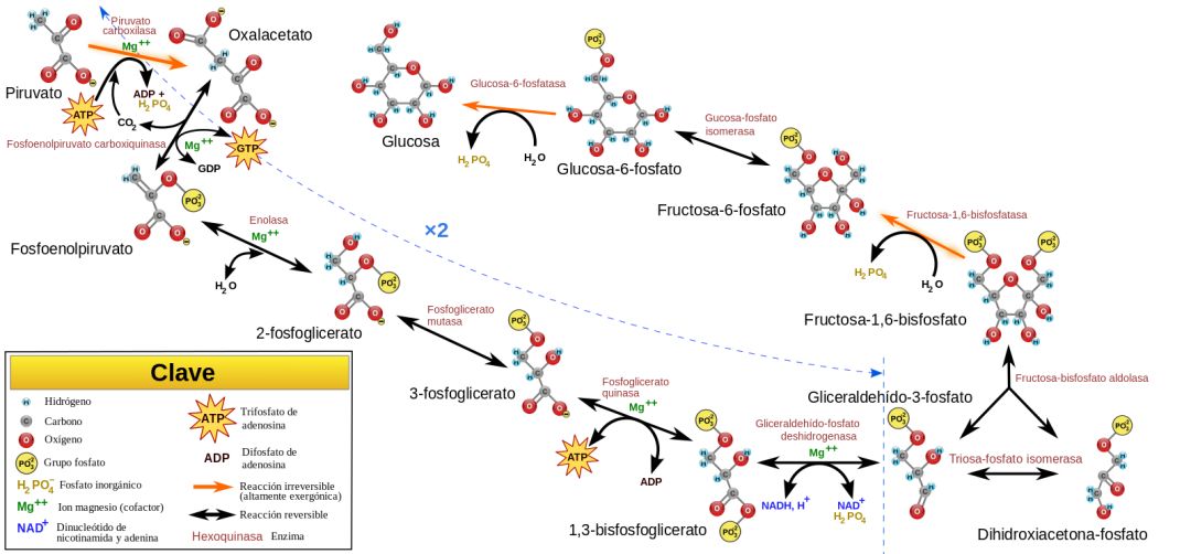 我们来复习一下大学生化课上的糖异生过程,点击可查看大图。图片:AngelHerraez / wikimedia