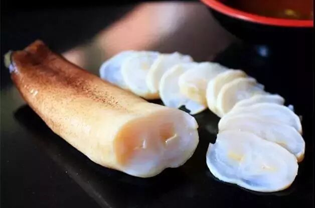 日本女神蛤在日料中也属于高级贝类,寿司店里的象拔蚌通常就是它,肉质丰盈,弹性极好,很难捏成寿司,所以十分考验寿司职人的功力。