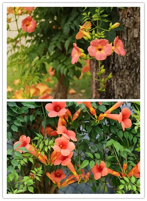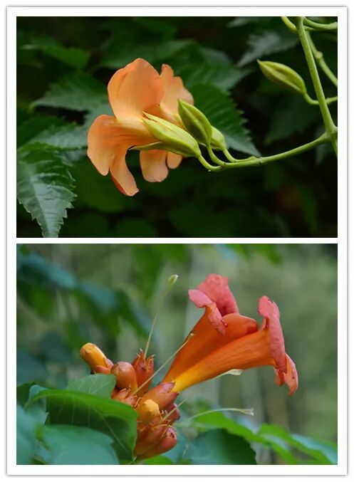 滑动查看,上图为凌霄,下图为厚萼凌霄。图片:nanoom / Pixabay、版纳花轮君