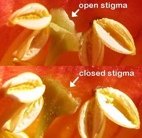 此外,凌霄属植物的柱头还有一个神奇的特征:会运动。这种由上下两个裂片构成的柱头,叫做二裂柱头(bilobed stigma)。当它受到外界刺激后,就会发生闭合现象;而在刺激解除后,又会再次打开。