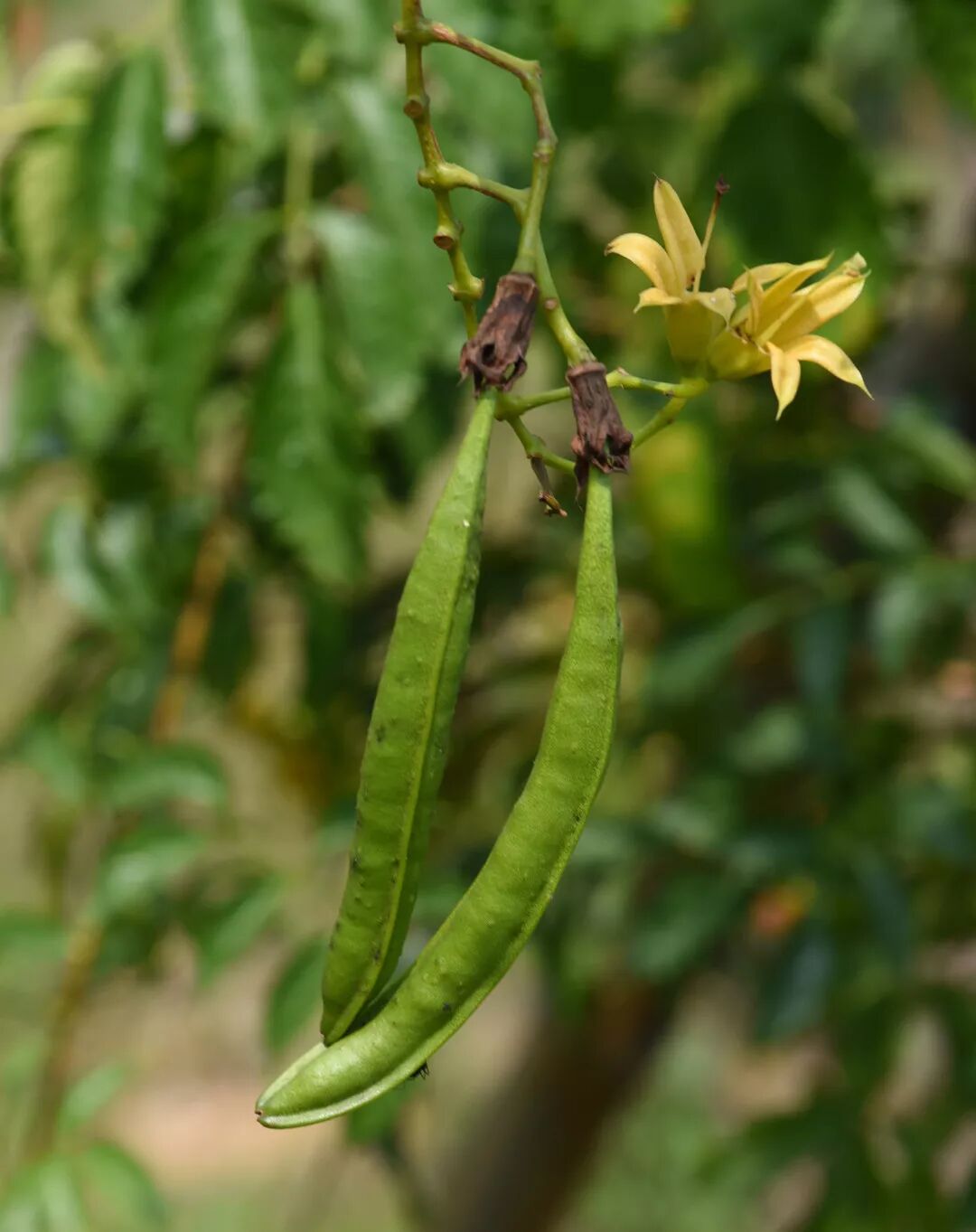 左图凌霄果实,右图厚萼凌霄果实。图片:喵喵植物控、 Dave Whitinger / Wikimedia