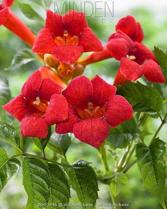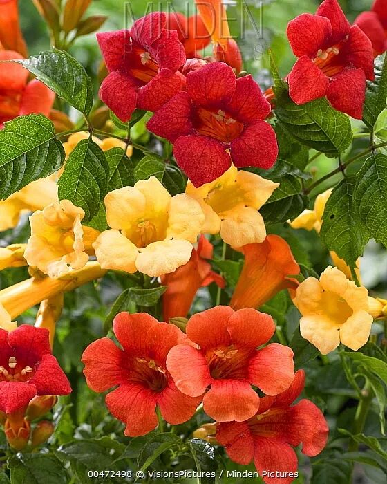 杂交凌霄既保留了父本的形态,也兼具母本的性状。图片:Jurgen&Christine Sohns / FLPA / Minden Pictures