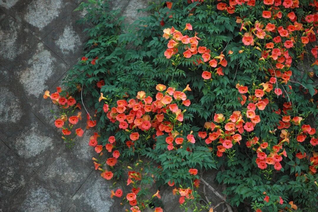 如今,我们看到的“凌霄”,大多是杂交凌霄,少数为厚萼凌霄,而身为乡土植物的凌霄,却不容易见到。想邂逅真正的中国凌霄,一睹它那橘红火热的芳容,还是需要一点运气的。