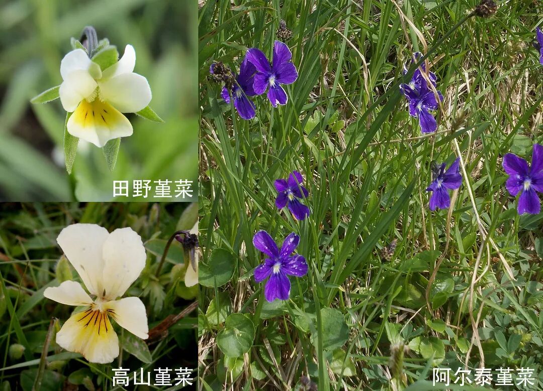 田野堇菜、高山堇菜与阿尔泰堇菜。图片:K bogusz1& Meneerke bloem & Convallaria majalis / wikimedia