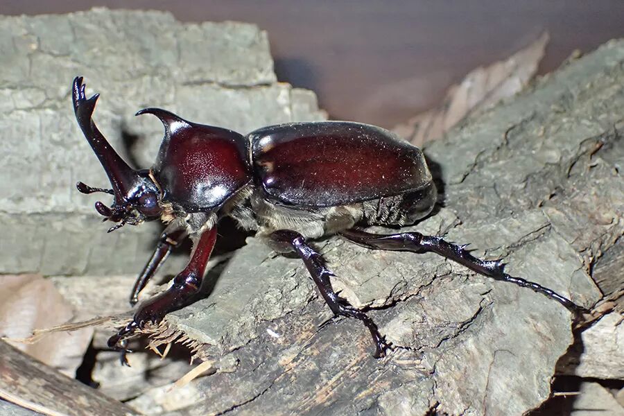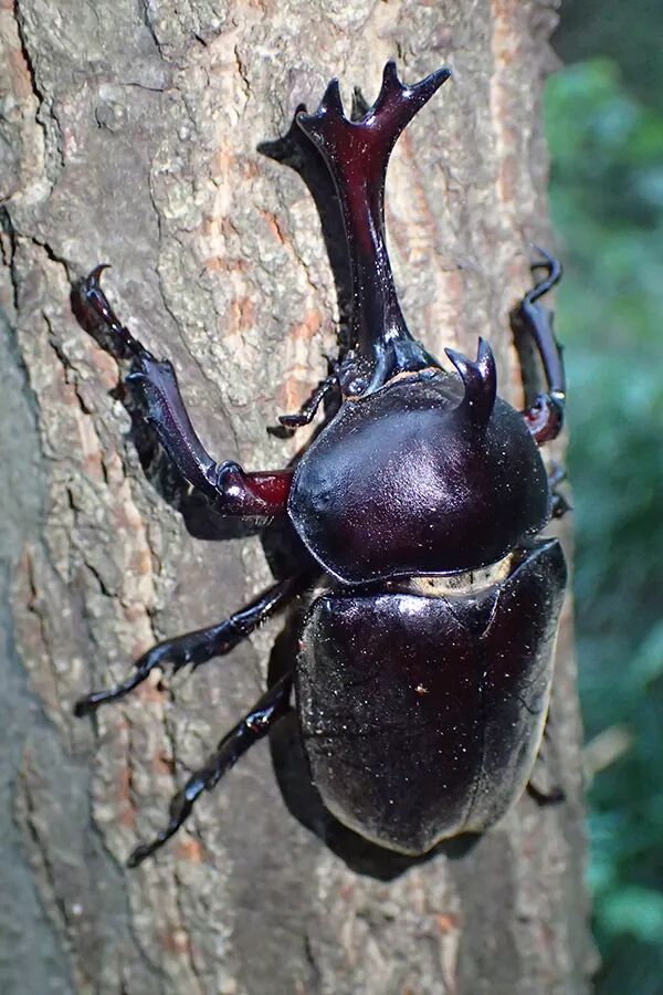 双叉犀金龟在我国东北、华北、华中、华南大部分地区都可以见到,国外则见于日本、朝鲜半岛及东南亚一些国家,主要栖息在低海拔山地天然阔叶林中。它们是夜行侠,黄昏和黎明是活动高峰期,白天会钻入树林地面的泥土中或落叶堆,有时也会到树木根部的缝隙中隐藏自己身形。