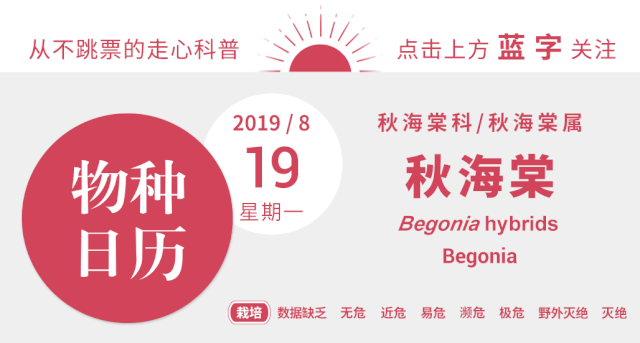不知道你有没有注意到,今天的物种日历其实并不是一个物种,而是秋海棠属的杂交品种集合。秋海棠属可能是被子植物第一大属最有力的竞争者,现在有效学名有约1800个以上,已发表的名称超过3000个,每年还有很多新种不断被发表。