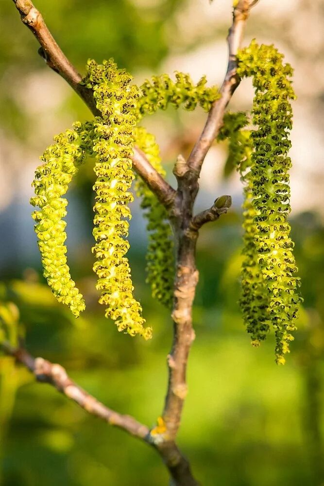 核桃树的雄花,“毛毛虫”般的葇荑花序。图片:Martin Ehrensberger / Wikimedia Commons