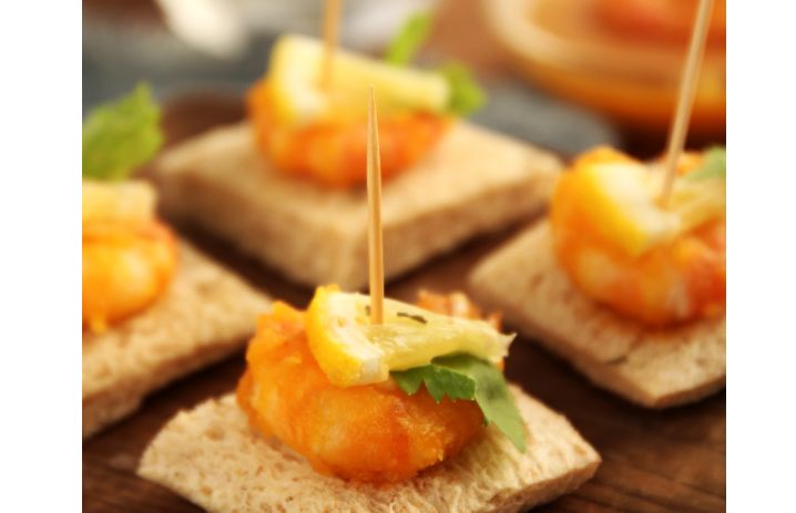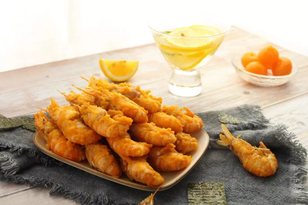 经过秘调卤水将活虾腌制入味后直接入5-6成油温炸至外壳酥脆,迅速冷却,保持肉质紧致弹牙。