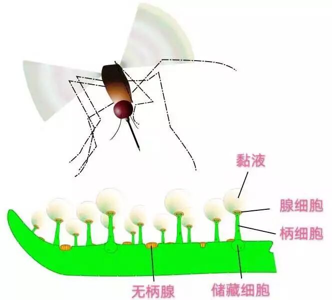 捕虫堇“捕食”昆虫的结构。图片:Noah Elhardt / wikipedia