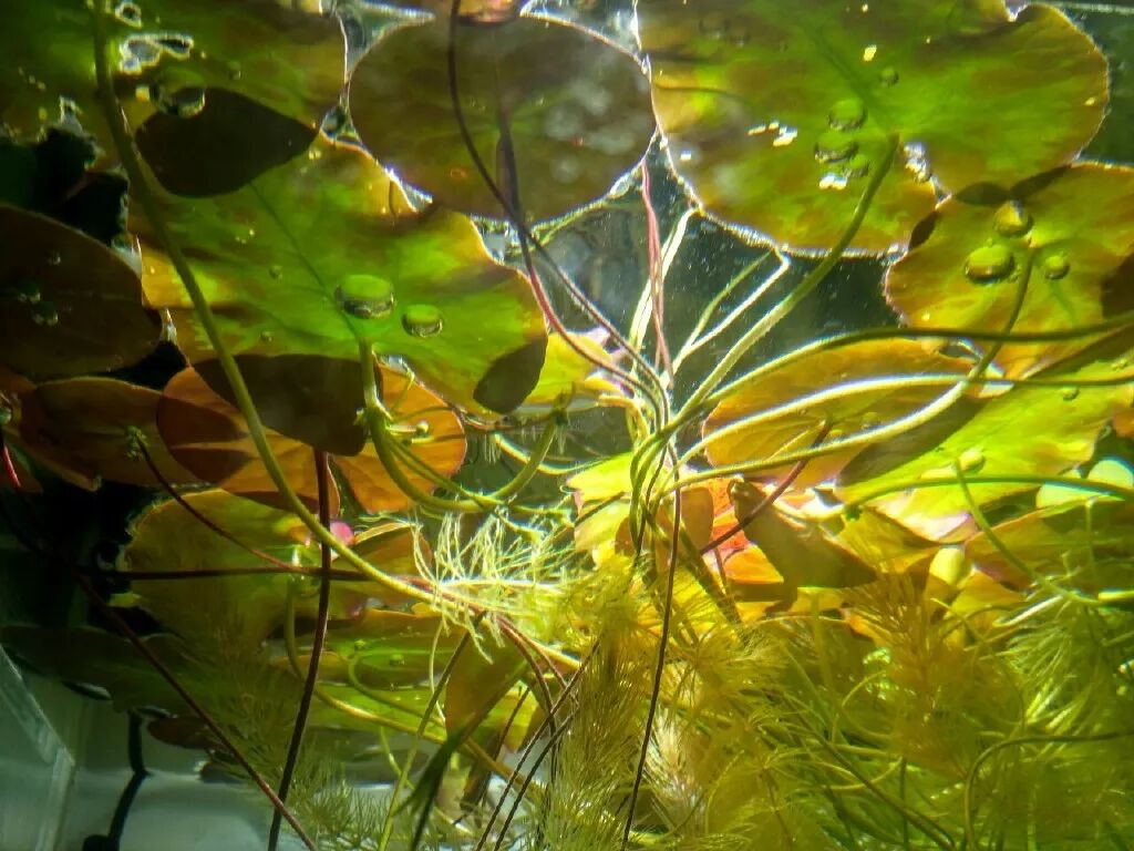 所以,如果想长期饲养“一叶莲”,我劝您弄个水草缸。我挺喜欢各种莕菜的,前两天有个朋友问我,龙骨瓣莕菜你那里还有吗?可惜,今年都被我清理了。原来不是随便买的吗?我一看,咦?网购渠道里竟然没卖的了?只有“大型一叶莲”了?哎呀,突然觉得还挺可惜的……