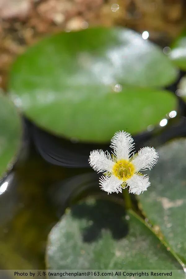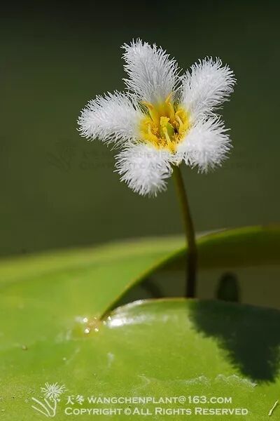 此外,曾在短暂出现在市场中的,还有原产于亚洲热带地区的钝齿莕菜N. crenata。钝齿莕菜花冠浅黄色,也有流苏状毛。这个不太好养,需要的水域比龙骨瓣莕菜还要大些,而且喜爱高温。我自己种过,北方室内过冬有点难。曾经见过有卖,不多。
