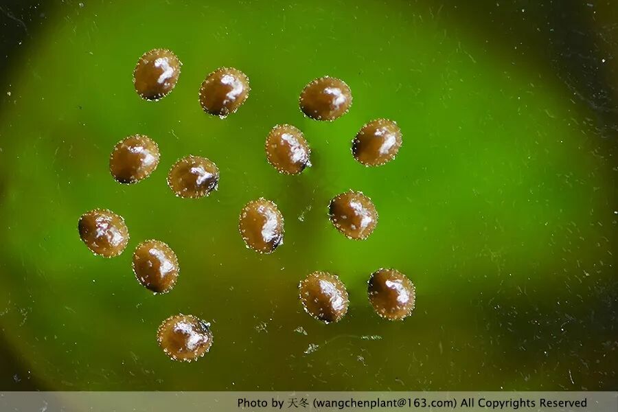 小莕菜的种子漂浮在水面上的样子。图片:天冬