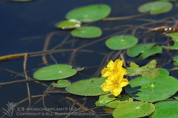莕菜属学名Nymphoides的意思是“像睡莲一样的”,莕菜和睡莲都是扎根水下,叶片漂浮,不开花的时候,远远看过去确实神似。