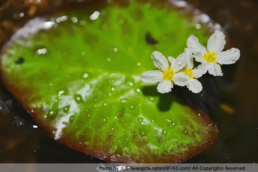 第二种则是“中型一叶莲”,正式名称是龙骨瓣莕菜N. hydrophylla。我觉得卖得比较好的就是这种,以前北京的花市上还有人批发。叶片大小中等,有时叶片边缘带有紫褐色,开花也是白色的,基部有一点点黄。真别说,这个物种开起花来清新脱俗,非常适合办公室人士和小清新们。