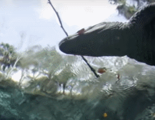 鳄类都是非常聪明的动物,不但如上文所说会细心地照顾子女,捕猎时也很讲究策略,并非大多数人刻板印象里的无脑莽汉。非洲的尼罗鳄(C. niloticus)有复杂的社会关系,在狩猎中,经验和等级都比较低的菜鸟们会作为辅助,配合身经百战的大佬“打野”。美洲短吻鳄则有特别的捕食技巧:它们会把树枝顶在头上,吸引寻找筑巢材料的水鸟上钩。虽然还不算制造工具,但它们确实已经可以使用工具了。