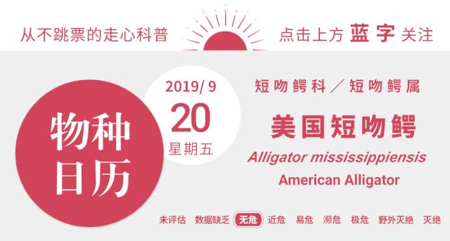 美洲短吻鳄(Alligator mississippiensis)又叫密河鳄,是短吻鳄属硕果仅存的两个难兄难弟之一。不过说“难兄难弟”也不太合适,因为不能因为一类动物中现存的种类少,就断定它们一定过得不好或者不成功。