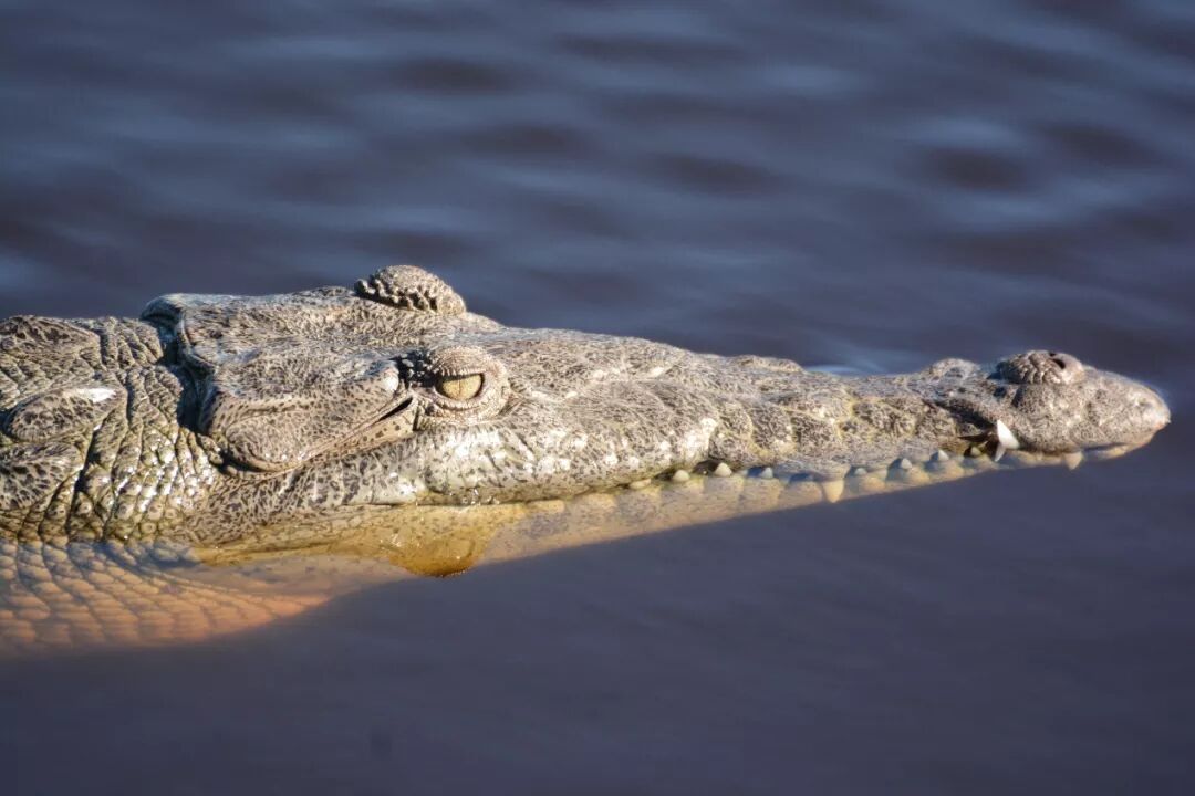 美洲鳄近照,尖而细的上颚并不会遮住下颚的牙齿,看起来犬牙交错,更加凶猛。图片:虫爷ChenZ