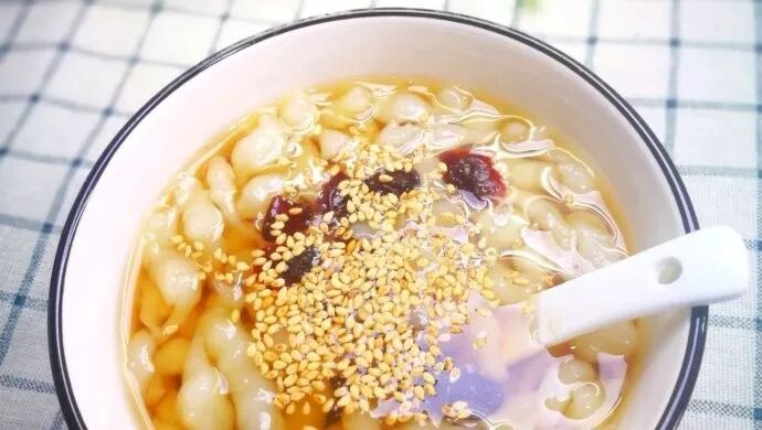 凉虾现在不如冰粉常见了,却也是解辣的好物。说是叫凉虾,但是轻轻搅拌起来更像是小蝌蚪,入口后滑溜溜,红糖的滋味也更足,再配上几颗红枸杞,啊,又是健康的一餐!此时夜色更深了,酒过三巡也是时候和朋友挥手告别了。