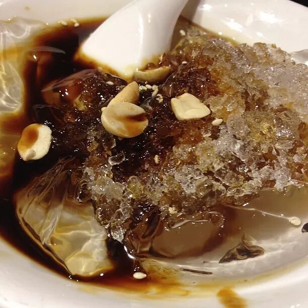 火热过后,真的就需要什么东西让人冷淡下来了。这时候来一碗冰粉或者凉虾是比啤酒更好的灭火器。冰粉类似果冻,却比果冻柔软,透明,纯手工制作的可见细密的气泡。淋上熬好的红糖酱汁,一勺下去再配上几颗葡萄干和新鲜水果,轻轻一吸,冰粉儿就带着清凉的质地在口中融化开来。