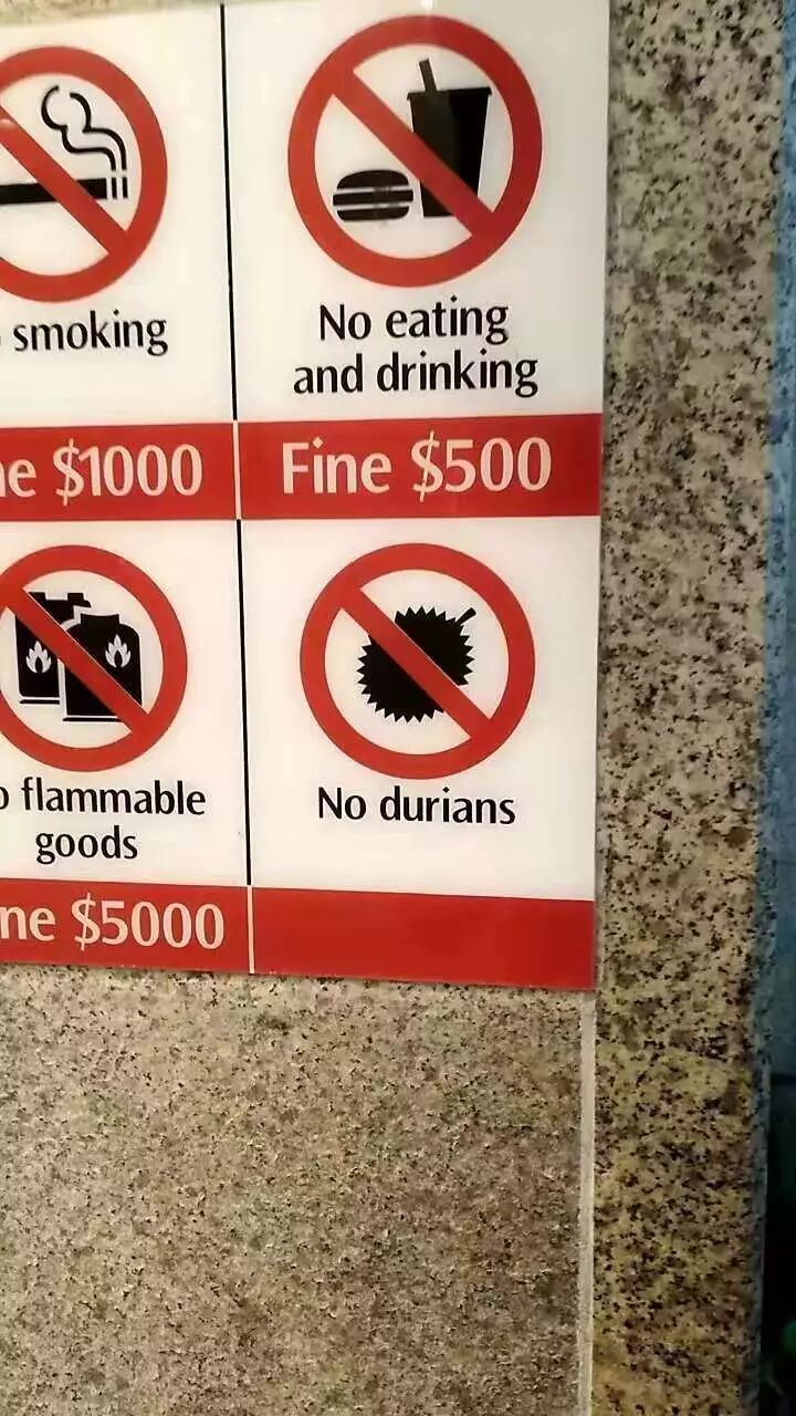 新加坡地铁上禁止榴莲入内的标识。图片:红色皇后