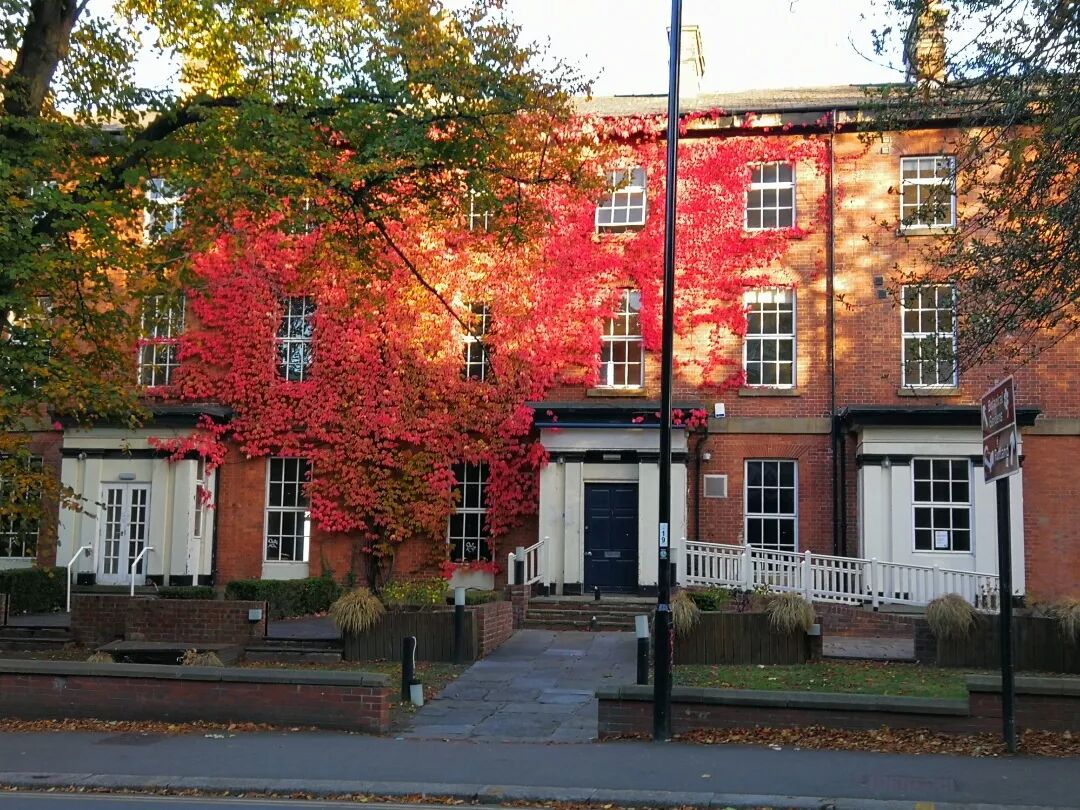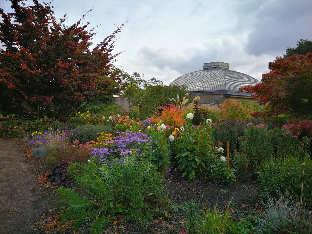 9月下旬,在任性西风和阴冷秋雨的催促下,植物们纷纷换了套装束。终于在10月初,狂野的西风把谢菲尔德的调色盘打翻了,到处都流淌着缤纷绚丽的秋色。谢菲尔德植物园温室外景观,比墙砖还红的三叶地锦,以及正在变黄的欧洲水青冈。图片:江南蝶衣