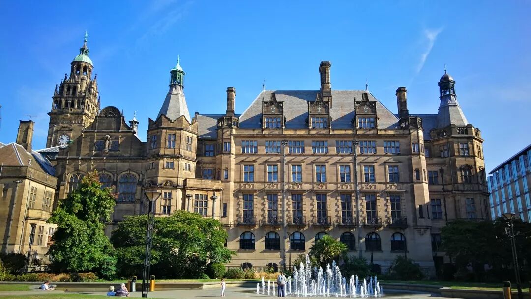 来到谢菲尔德生活已有月余,这是一座建在七座山上的城市,地处英国中部,坐落于英格兰南约克郡。英国华人称谢菲为“雪埠”(得名于穿过该市的Sheaf河),来自中国的留学生则亲切地叫它“谢村”。谢菲尔德市政厅(Sheffield Town Hall),建于1890年至1897年。图片:江南蝶衣