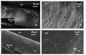 上图是正常头发,下图是染发后的,原本鱼鳞一样的毛鳞片的排列消失了,改变还是很明显的 | 文献[1]