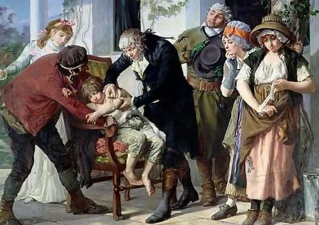 一个流传已久的故事:爱德华·琴纳发现挤奶女工不会得天花,于是从挤奶女工手上的痘痂里取了些脓液,接种给一个8岁男孩。图片:telegraph.co.uk