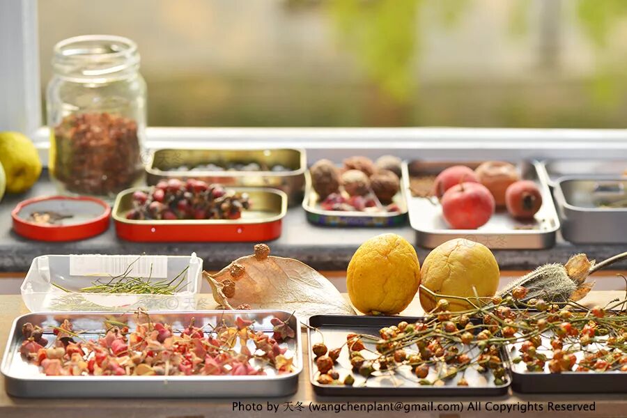 本文作者秋季窗台上收集的果实和种子。图片:天冬