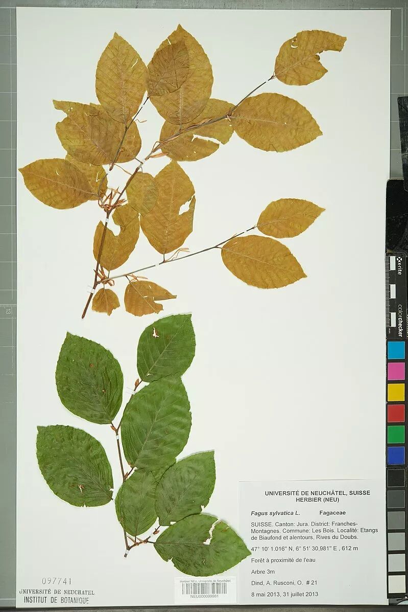 经过风干和压制的树叶标本。图片:Neuchâtel Herbarium / wikimedia