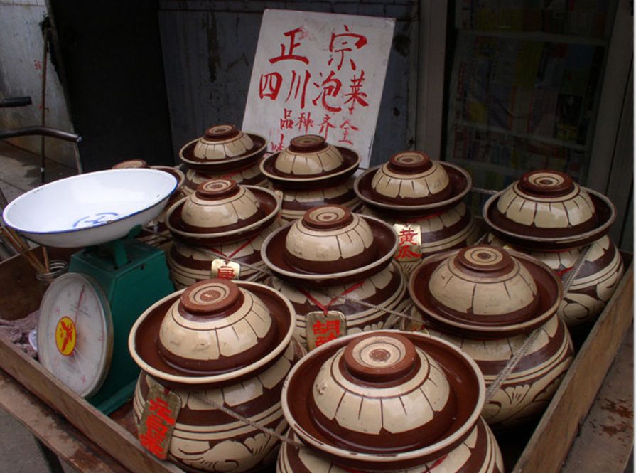 四川泡菜又叫泡酸菜、泡咸菜,自古有之。其前身为菹 (zū) ,是古代人对利用食盐等腌渍浸泡的蔬果和肉制品的统称。四川泡菜的最早出现时间已不可靠,据考古证据,其出现不早于秦汉时期泡菜坛的出现。但无论如何,保存在中国泡菜博物馆里的古代泡菜坛——汉代的双唇罐告诉我们,早在1700年前,古代的好吃嘴们就已经吃上了酸爽可口的泡菜。