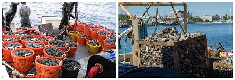 北极贝的捕捞区域非常有限,主要集中在加拿大周边的北大西洋海域,因此加拿大也是全球公认的优质北极贝出产国。捕捞北极贝时,采挖船需要先将拖网沉入海底,再用高压水管冲刷海床,打捞藏匿于泥沙深处的北极贝;北极贝捕捞上船后,会立刻分拣、去壳、清洗、蒸煮、最后急冻包装,力争在最短时间内,“锁住”北极贝鲜甜爽脆的口感。